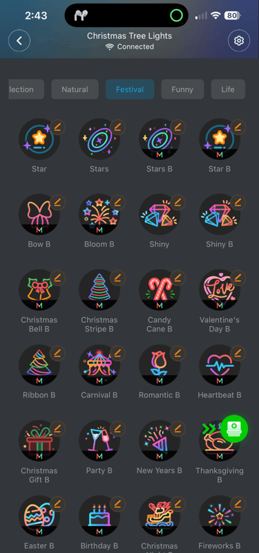 I was hoping for a way to make a color set that simply alternated between Red, White, and Green, but you only seem to be able to select the color of segments of lights.